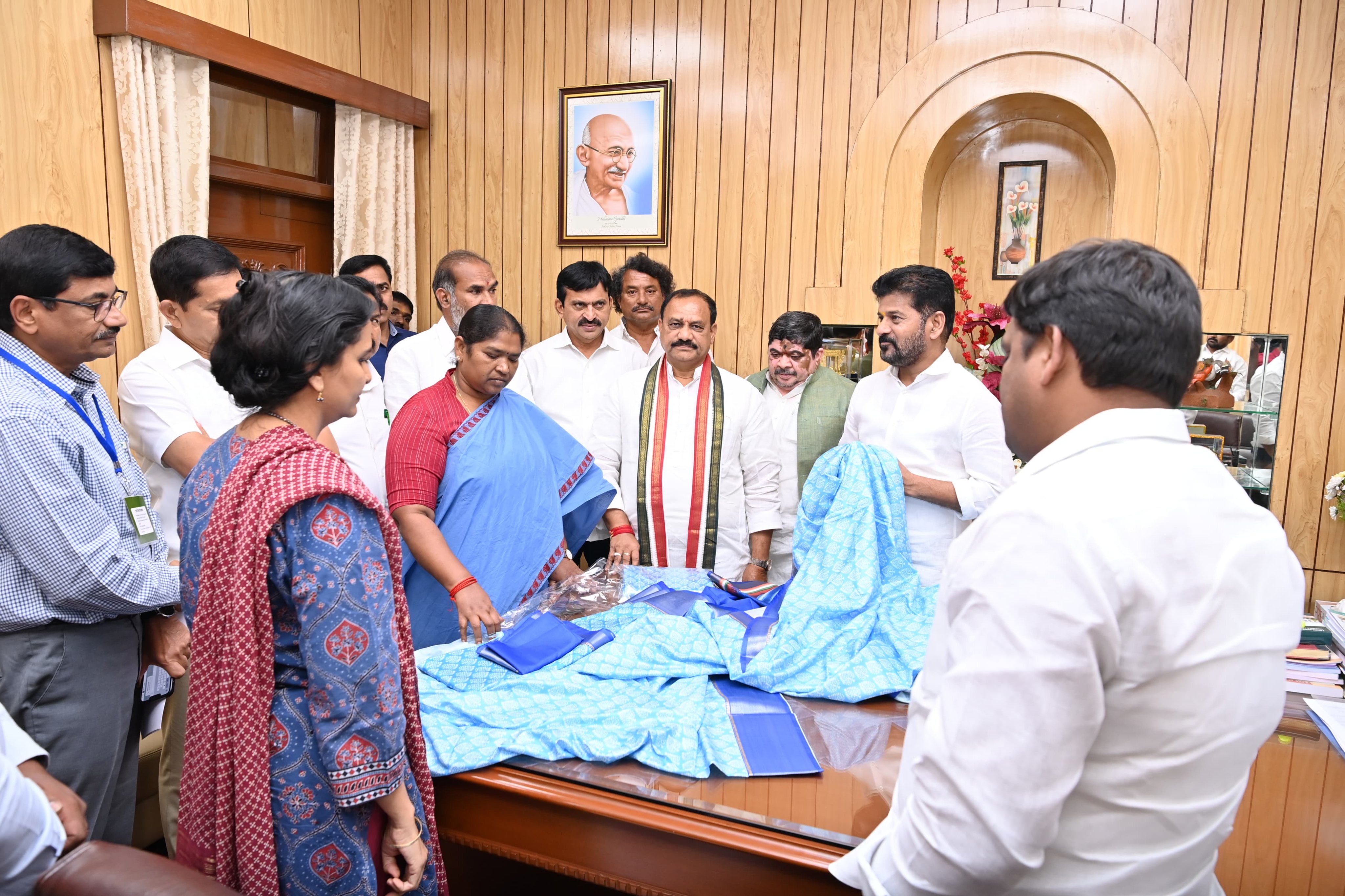 రాష్ట్ర ప్రభుత్వం చీరలను స్వయం సహాయక సంఘాలకు ఇవ్వాలని నిర్ణయించింది. ఈ సందర్బంగా స్వయం సహాయక సంఘాల మహిళలకు అందించేందుకు ఎంపిక చేసిన నమూనా చీరలను పరిశీలించారు...