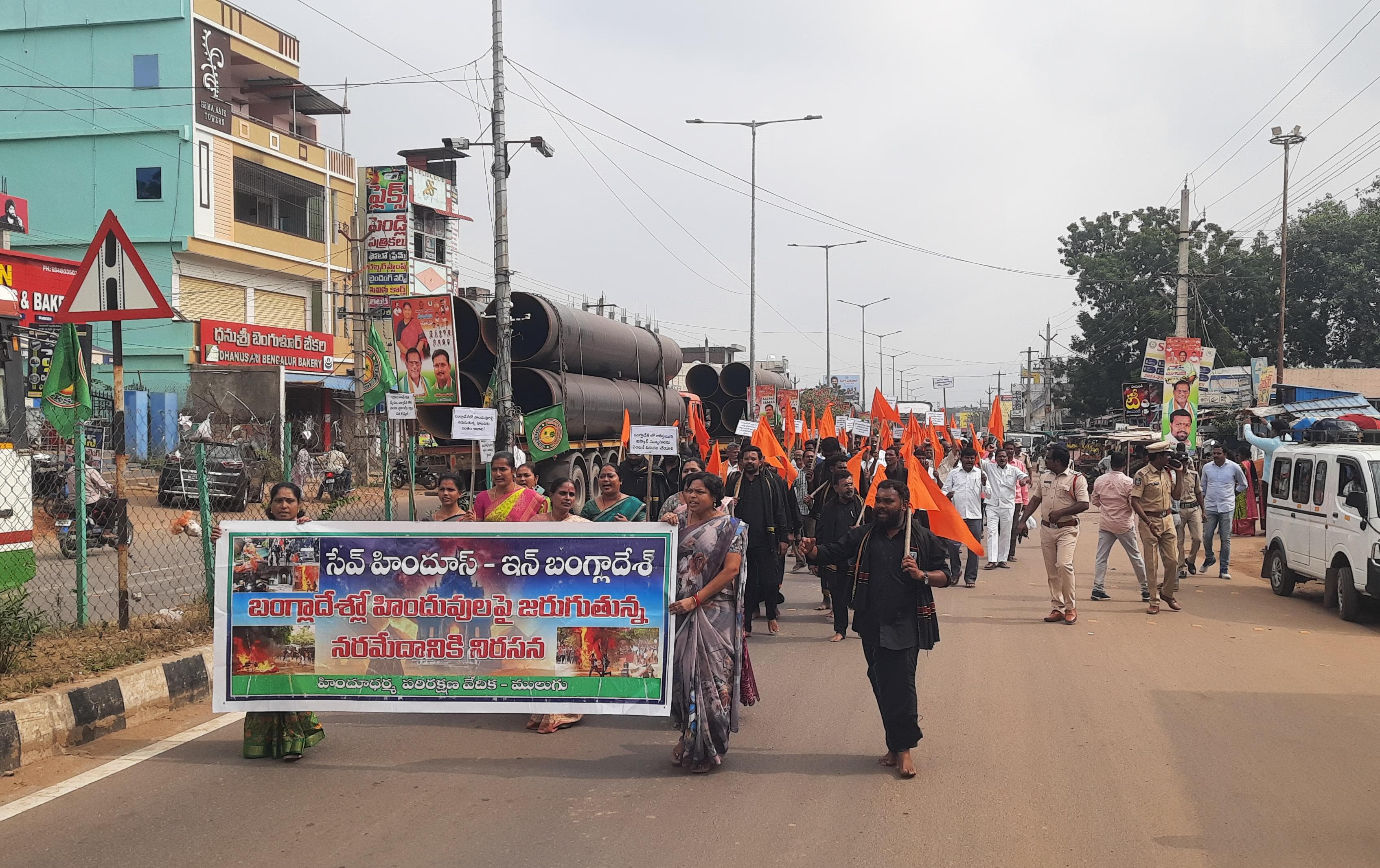 ములుగు జిల్లా కేంద్రంలో విశ్వహిందూ పరిషత్ ఆధ్వర్యంలో హిందూ సంఘాల నాయకులు ర్యాలీ నిర్వహించారు. బంగ్లాదేశ్ లో హిందువులపై జరుగుతున్న నర వేదాన్ని నివారించాలని, హిందువులను రక్షించాలని...