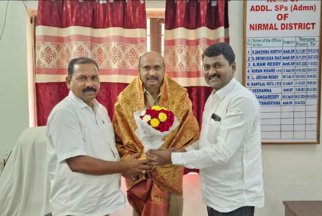 నిర్మల్ జిల్లా కేంద్రంలో అడిషనల్ SP గా పదవి భాద్యతలు స్వీకరించారు ఉపేందర్ రెడ్డి. ఈ సందర్బంగా ఆయనని మర్యాద పూర్వకంగా కలిసి శాలువాతో, బొకే తో...
