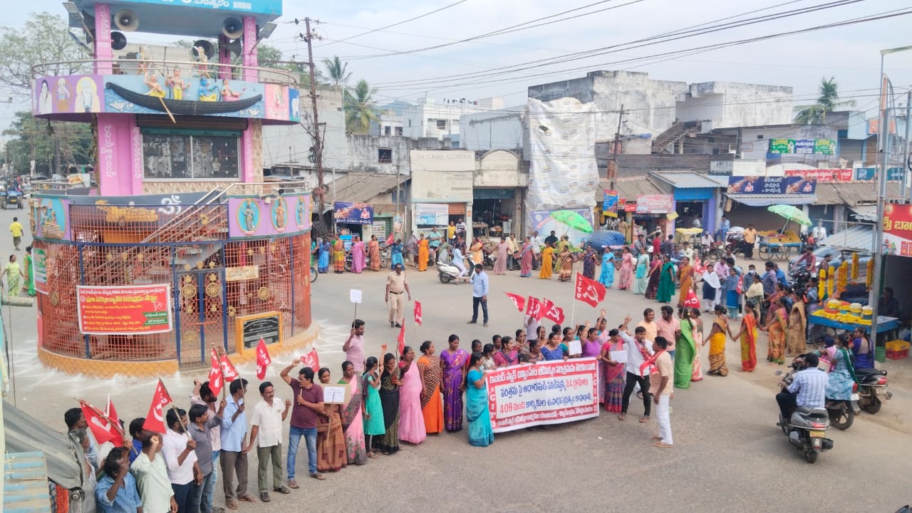 జీడిపిక్కల కంపెనీని తెరిపించాలని ర్యాలీ