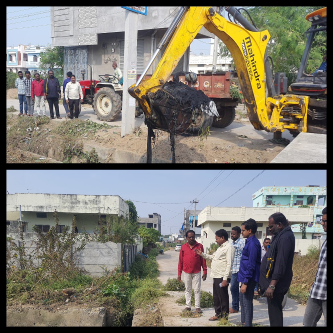 డ్రైనేజ్ పూడికతీత పనుల పరిశీలన
