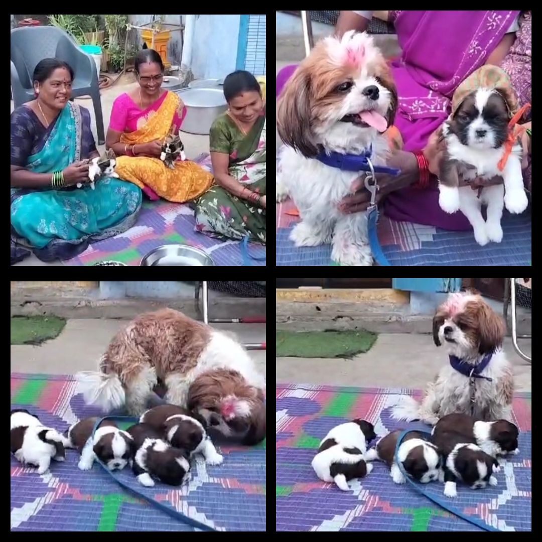 మెట్ పల్లి పట్టణానికి చెందిన వినోద్-లావణ్య దంపతులు ఓ శునకాన్ని పెంచుకుంటున్నారు. ఆ శునకం నాలుగు పిల్లలకు జన్మనిచ్చింది. జన్మించిన కుక్క పిల్లలకు వారు బారసాల నిర్వహించారు....