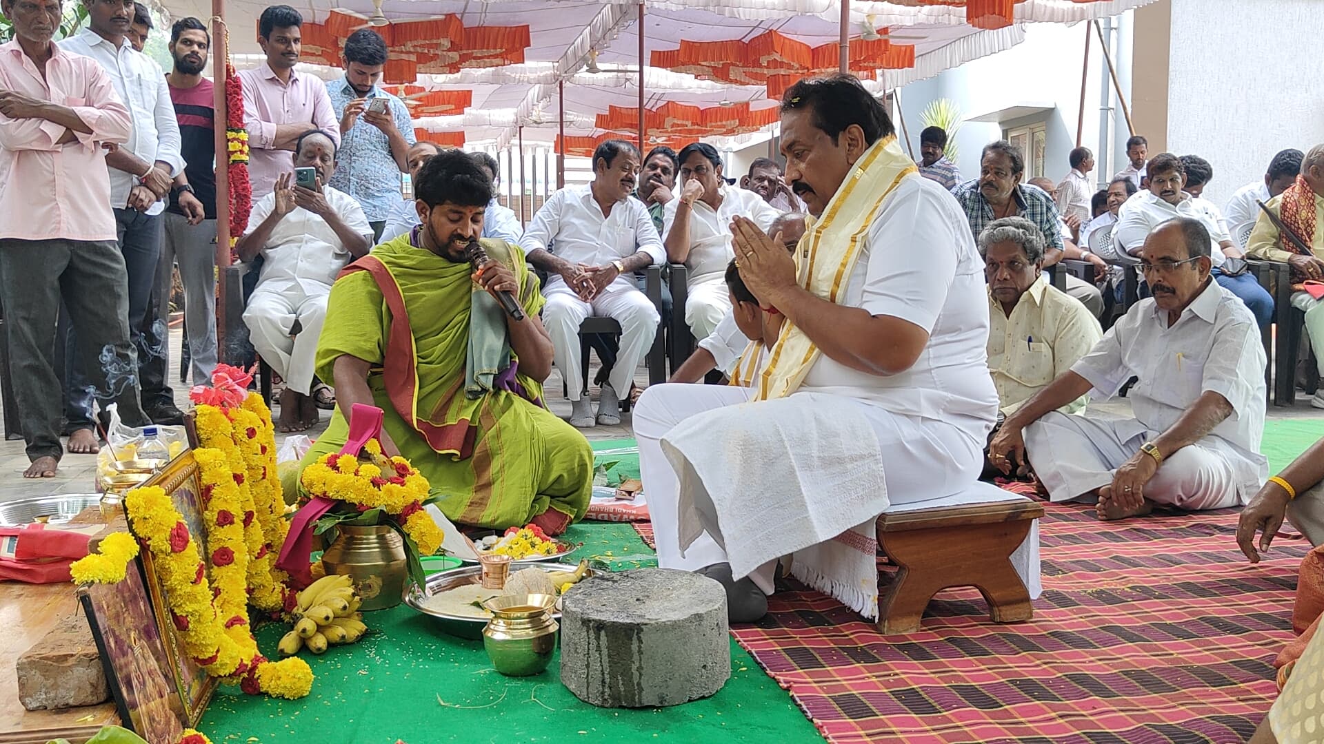 హోమంలో మాజీ మంత్రి రఘువీరారెడ్డి