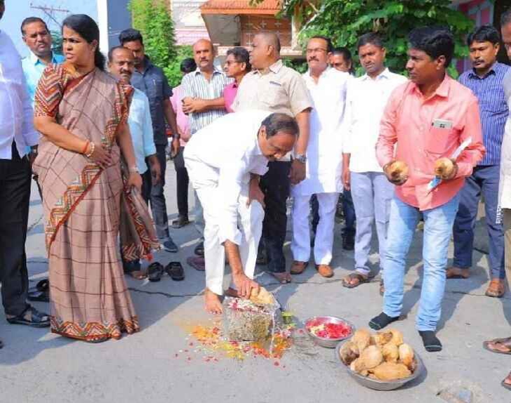 రోడ్డు నిర్మాణ పనులకు MLA శంకుస్థాపన