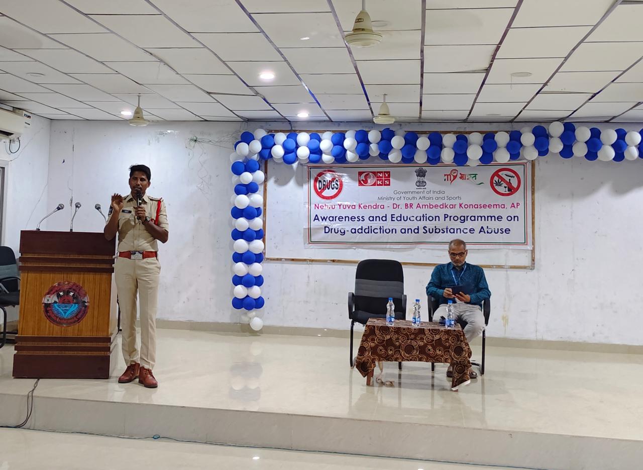అమలాపురం ఎస్కేబీఆర్ కళాశాల నందు నెహ్రూ యువ కేంద్ర ఆధ్వర్యంలో డ్రగ్స్ మీద అవగాహన సదస్సు జరిగింది. ముఖ్య అతిథిగా పట్టణ ఎస్సై శ్రీనివాస్ పాల్గొని విద్యార్థినీ...