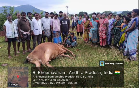 బుచ్చయ్యపేట మండలం ఆర్.భీమవరం గ్రామంలో మంగళవారం సాయంత్రం వర్షం పడింది. ఆ సమయంలో పడిన పిడుగుకు పాడి ఆవు మృతి చెందింది. మృతి చెందిన పాడి ఆవు...