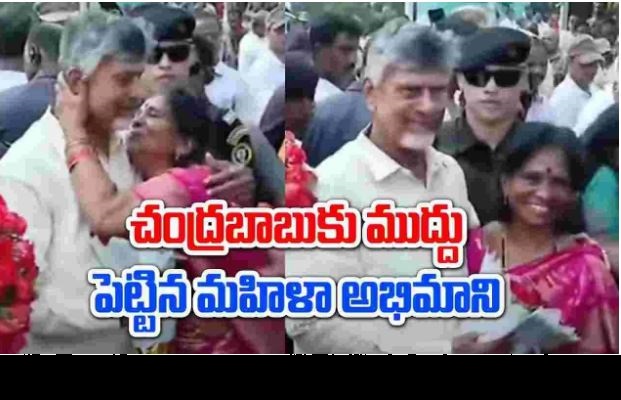 బాబుకు ముద్దు పెట్టిన మహిళా అభిమాని