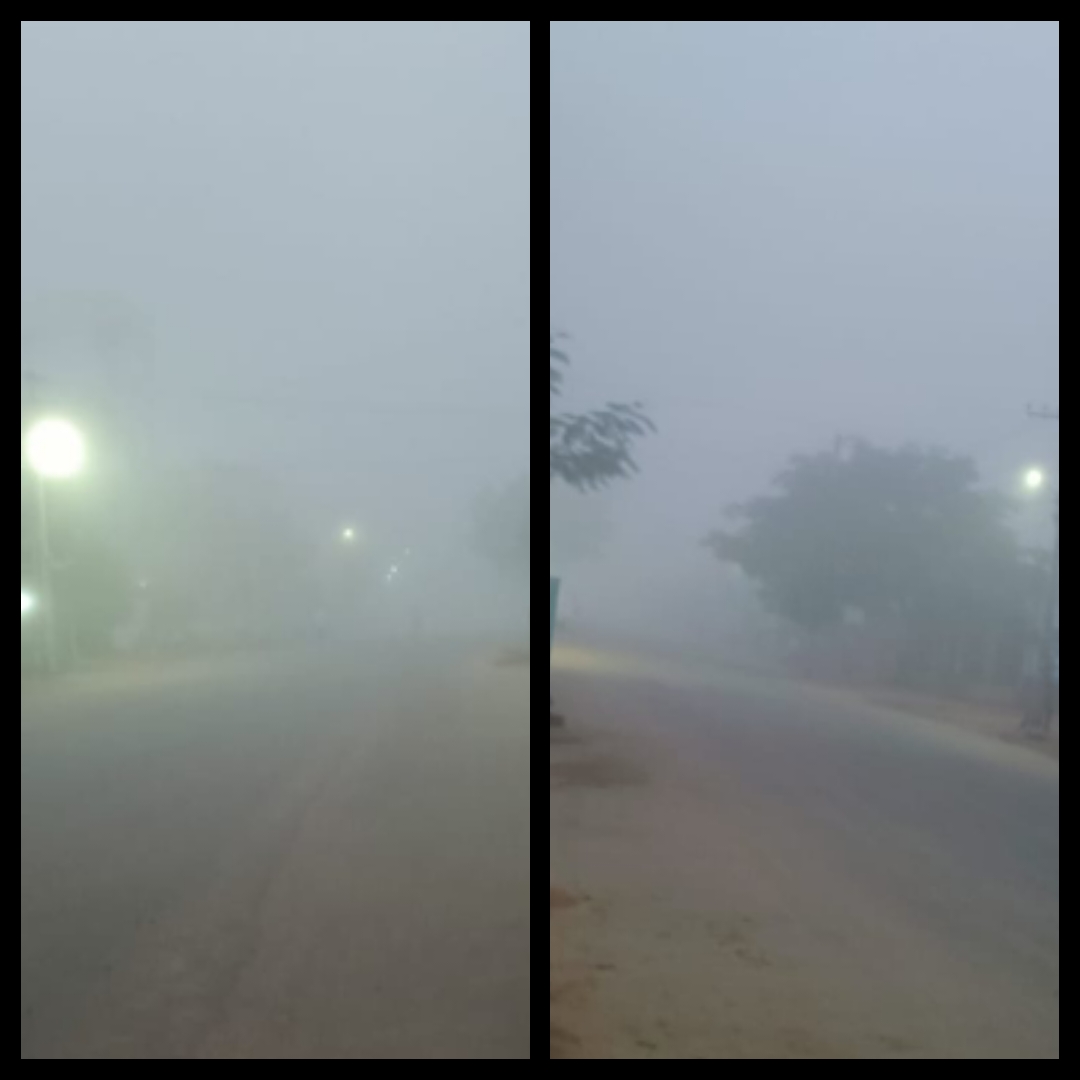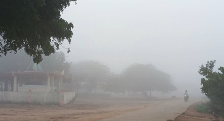 గ్రామాన్ని కామ్మేసిన పొగ మంచు