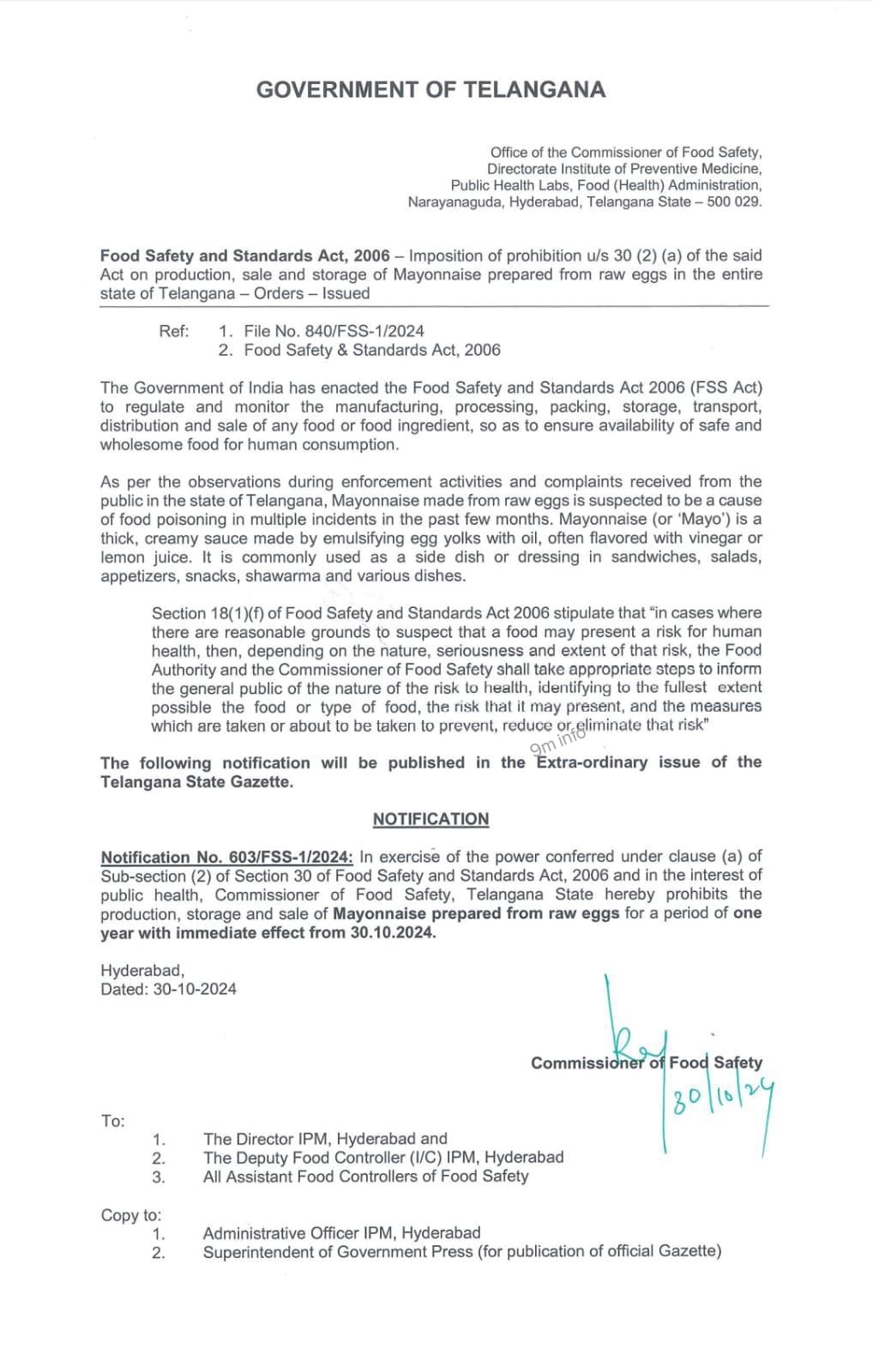 ప్రజల ఆరోగ్యంపై తీవ్ర ప్రభావం చూపుతున్న మయోనైజ్ను నిషేధించాలని ప్రభుత్వం నిర్ణయించింది. ఈ మేరకు అవసరమైన ఉత్తర్వులు జారీ చేయాలని ఫుడ్ సేఫ్టీ కమిషనర్ ఆర్వీ కర్ణన్ను...