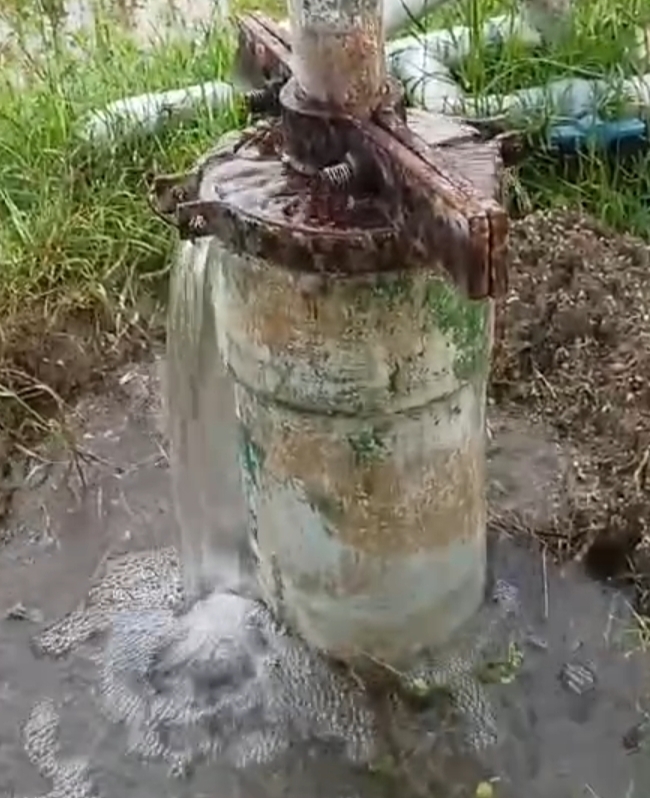 బోరు నుంచి ఉబికి వస్తున్న గంగా