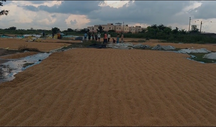 వర్షానికి తడిసి ముద్దయిన వరి ధాన్యం