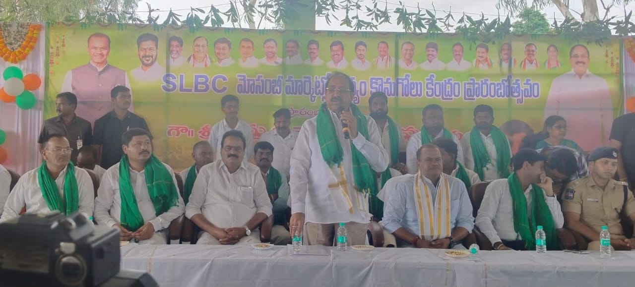 నల్లగొండ ఎస్ఎల్ బీసిలోని బత్తాయి మార్కెట్లో ధాన్యం, పత్తి కోనుగోలు కేంద్రాలను మంత్రులు తుమ్మల నాగేశ్వరరావు, కోమటిరెడ్డి వెంకట్ రెడ్డి ప్రారంభించారు. రైతులు కొనుగోలు కేంద్రాన్ని వినియోగించుకోవాలని...