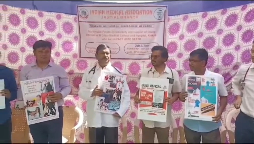 జగిత్యాల: దేశంలో వైద్యులపై జరుగుతున్న దాడులను ఖండిస్తూ జిల్లా కేంద్రంలోని ప్రభుత్వ ఆసుపత్రిలో డాక్టర్లు నిరాహార దీక్ష చేపట్టారు. ఈ సందర్భంగా వారు మాట్లాడుతూ.. కలకత్తా ఆర్...