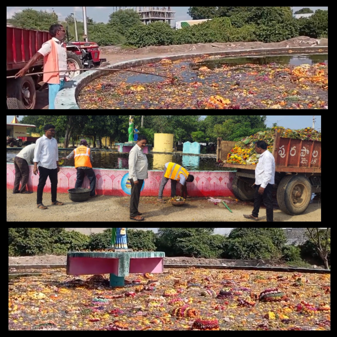 నిమజ్జనం చేసిన బతుకమ్మలు కంపోస్ట్ షెడ్డుకు తరలింపు