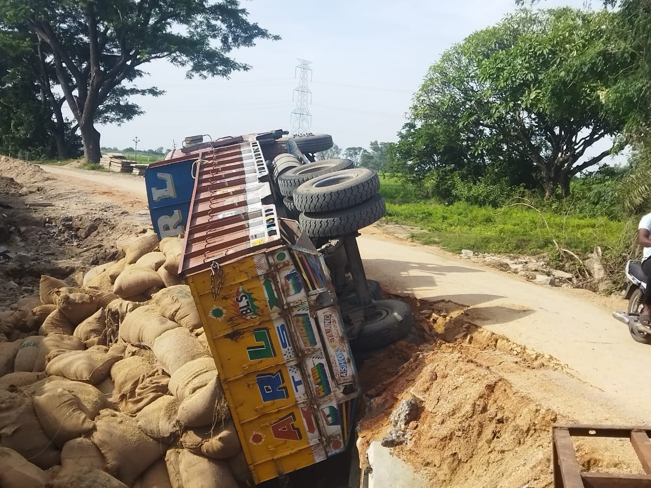గంగమ్మ వాగు వద్ద లారీ బోల్తా