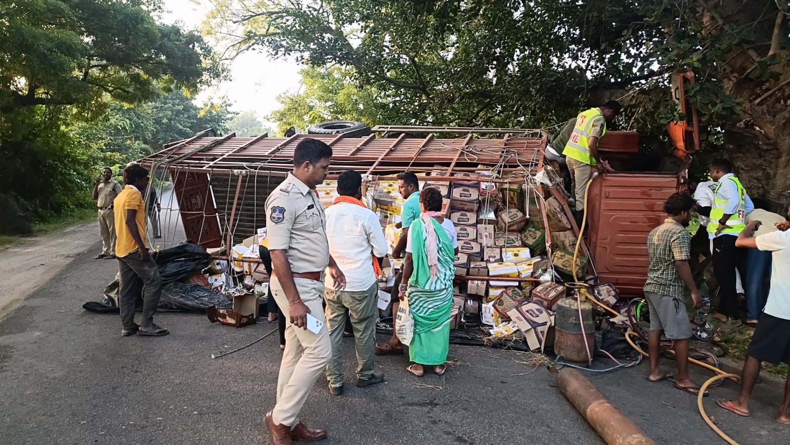జగిత్యాల జిల్లా మల్యాల మండలం ముత్యంపేట శివారులో జగిత్యాల - కరీంనగర్ జాతీయ రహదారిపై కరీంనగర్ నుండి జగిత్యాలకు వంట నూనె ప్యాకెట్లు తీసుకెళ్తున్న వ్యాన్ బోల్తా...