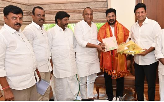 సీఎం రేవంత్రెడ్డిని బీఆర్ఎస్ ఎమ్మెల్యే మల్లారెడ్డి కలిశారు. జూబ్లీహిల్స్లోని సీఎం నివాసంకు వెళ్లిన మల్లారెడ్డి.. తన మనమరాలి వెడ్డింగ్ కార్డుని రేవంత్కి అందజేశారు. వివాహ వేడుకకు హాజరుకావాలని...