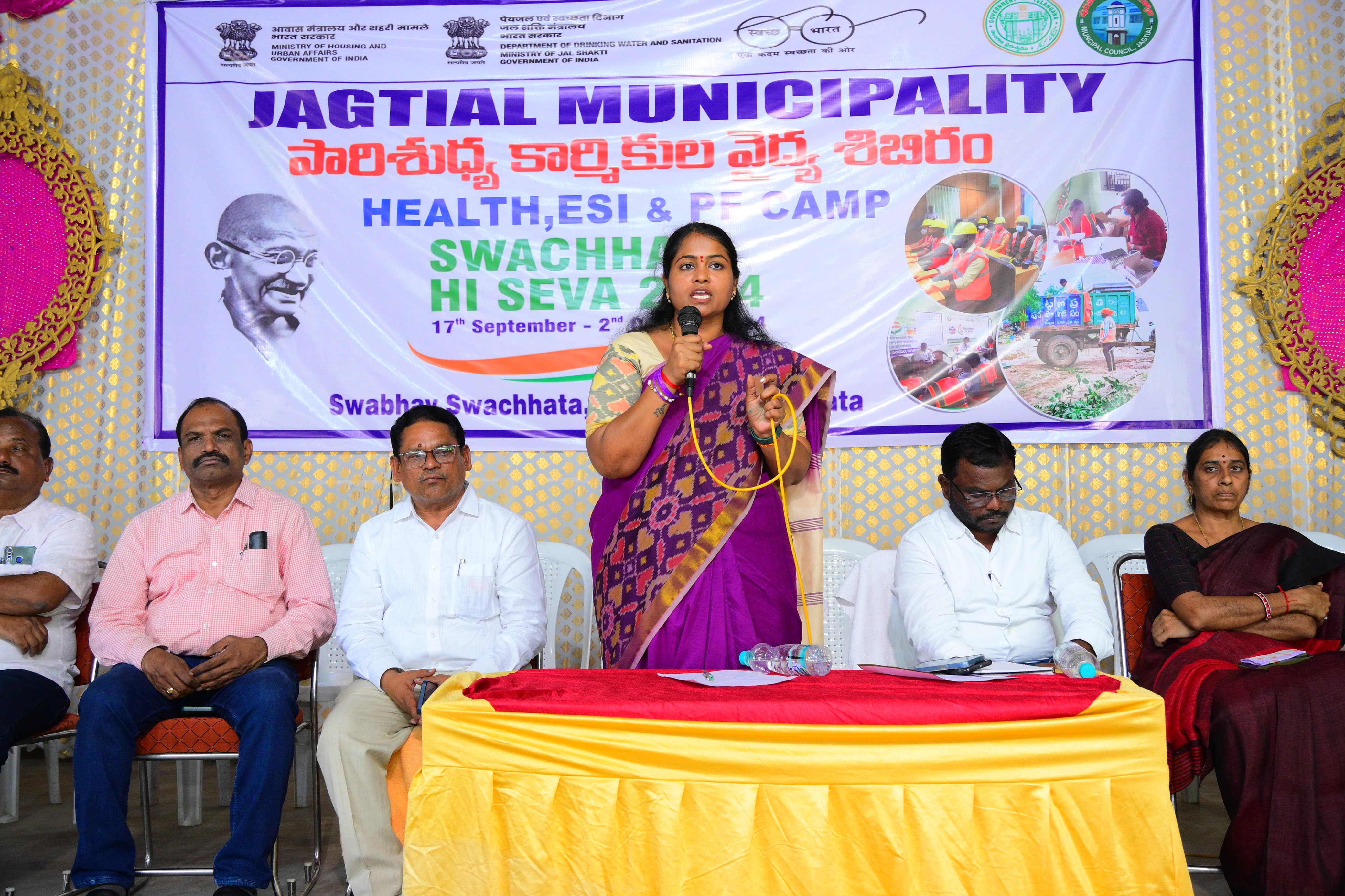 స్వచ్ఛత హి సేవ కార్యక్రమంలో భాగంగా జగిత్యాల మున్సిపల్ కార్మికులకు మున్సిపల్ చైర్ పర్సన్ ఆడువాల జ్యోతి మంగళవారం వైద్య శిబిరం ఏర్పాటు చేశారు. ఈ సందర్భంగా...