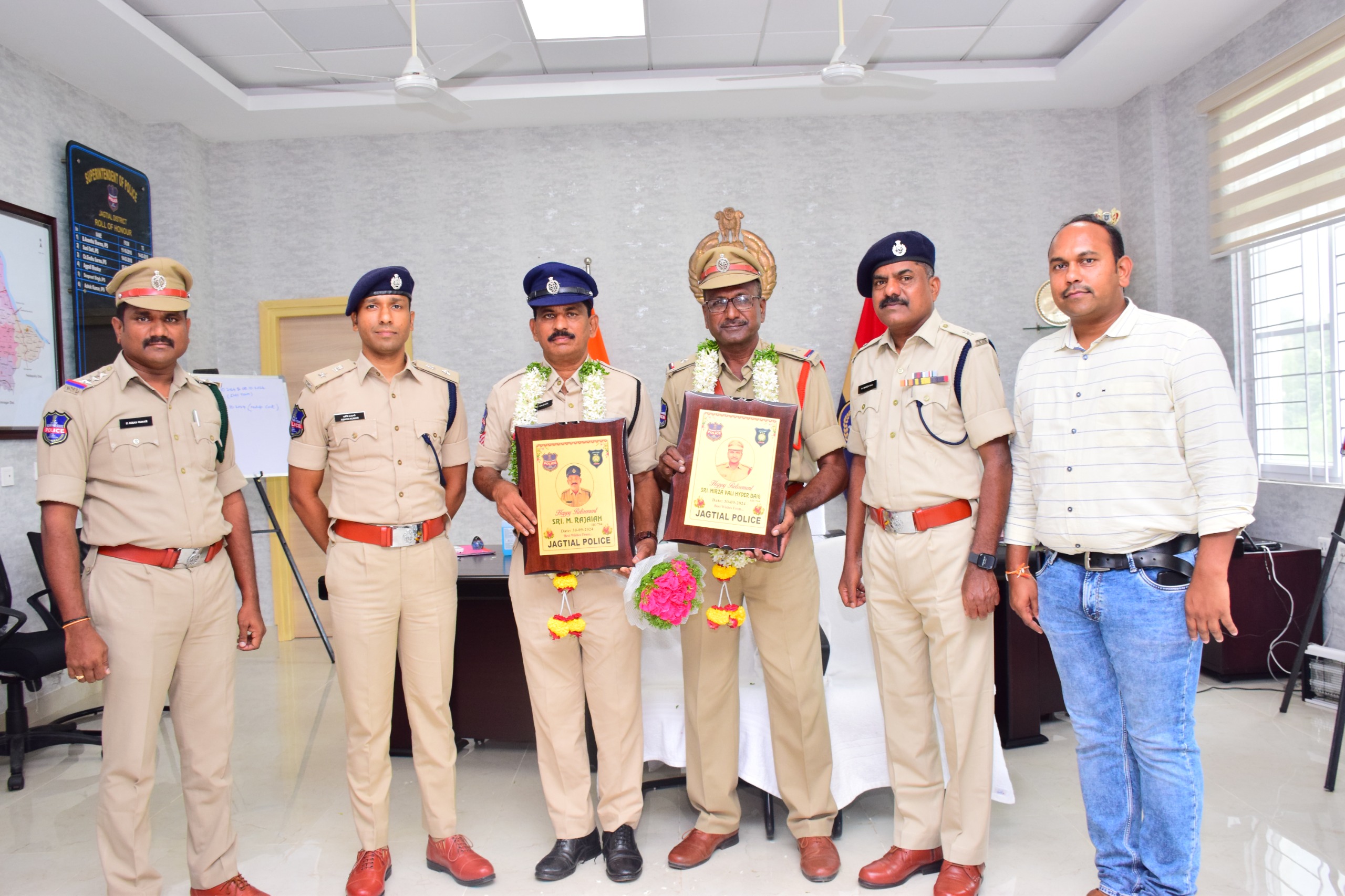 జగిత్యాల జిల్లా పోలీసు కార్యాలయంలో సోమవారం ASI వాలి బెగ్, హెడ్ కానిస్టేబుల్ రాజయ్య పదవి విరమణ సందర్బంగా వారిని పులమాలలతో సత్కరించి జ్ఞాపికను అందజేసిన జిల్లా...