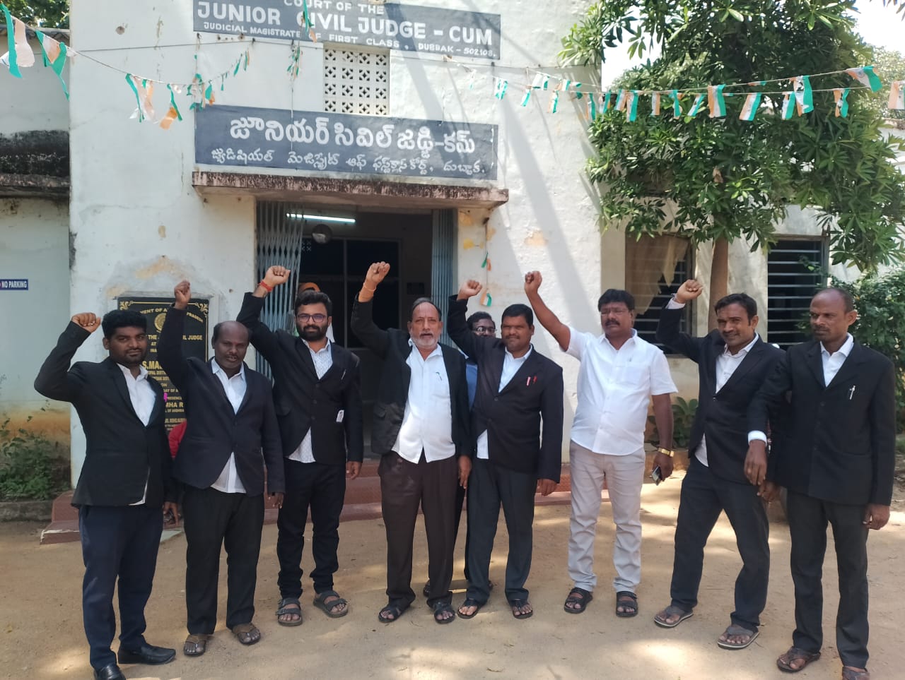 తెలంగాణ ఫెడరేషన్ ఆఫ్ బార్ అసోసియేషన్ పిలుపు మేరకు దుబ్బాకలో కోర్టు ఆవరణలో న్యాయ వాదులు ధర్నా, నిరసన కార్యక్రమం చేపట్టారు. న్యాయవాదులపై జరుగుతున్న దాడులకు నిరసిస్తూ...
