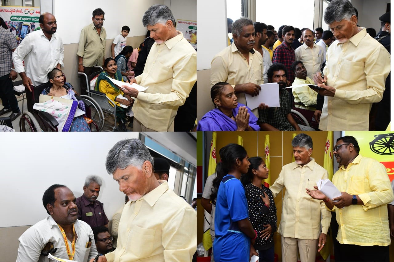 టీడీపీ కేంద్ర కార్యాలయంలో ప్రజల నుంచి అర్జీలు స్వీకరించిన సీఎం చంద్రబాబు
