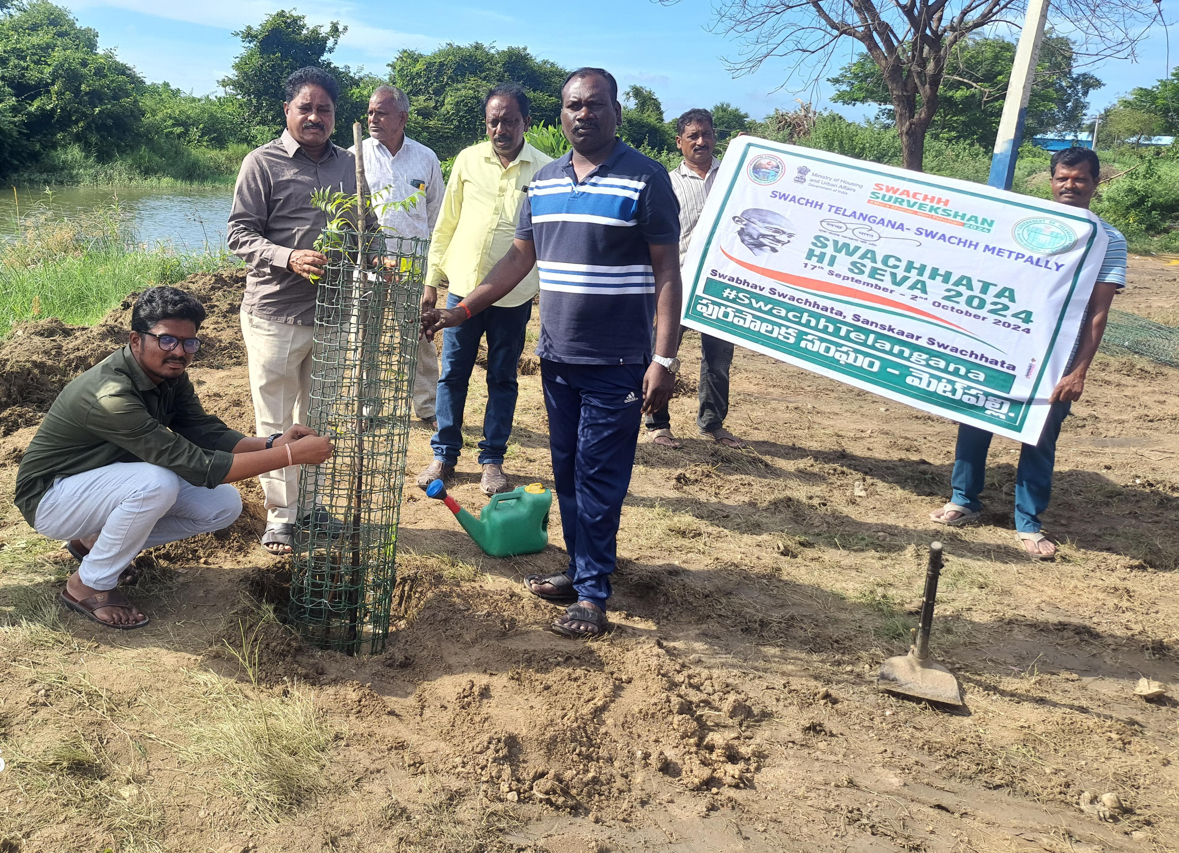 మెట్ పల్లి మున్సిపల్ కమిషనర్ టీ మోహన్ ఆధ్వర్యంలో స్వచ్ఛత హీసేవ ఏక్ పేడ్ మాకే నామ్ కార్యక్రమంలో భాగంగా మెట్ పల్లిలోని చిన్న చెరువు...