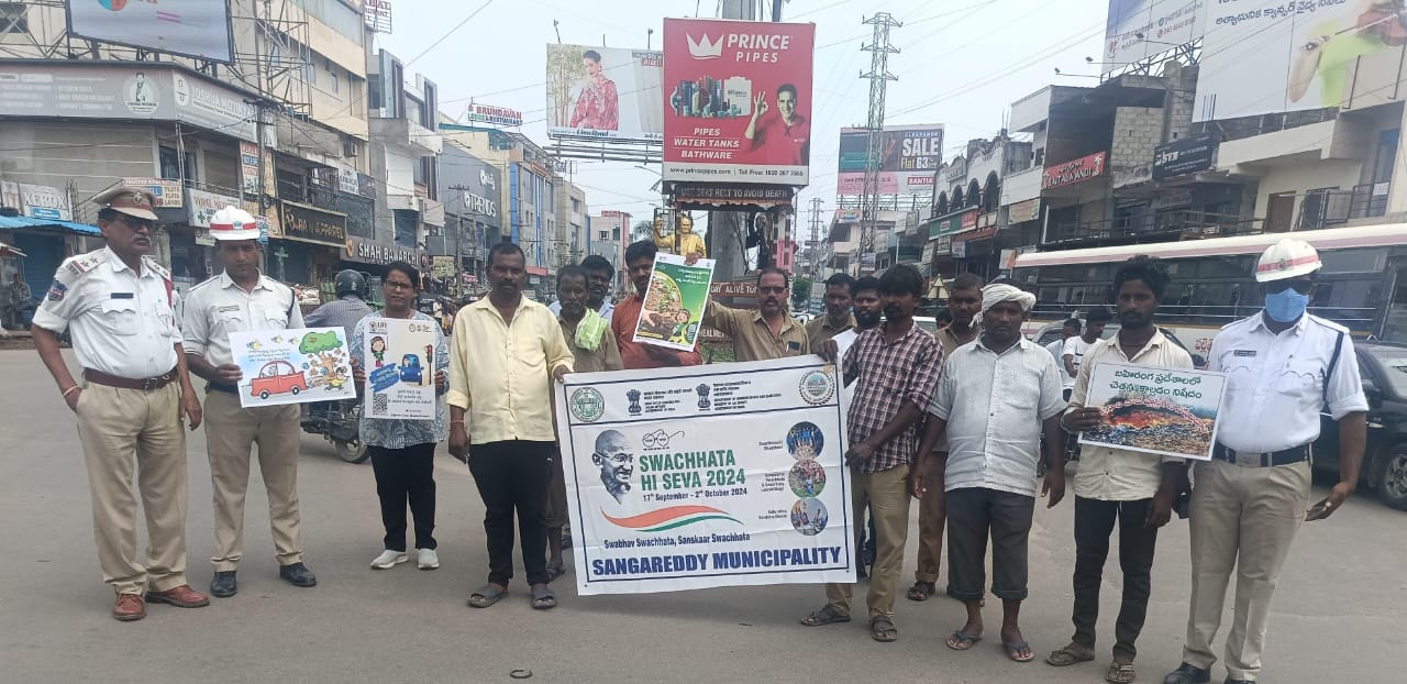 పోతిరెడ్డిపల్లి: సంగారెడ్డి మున్సిపాలిటీ ట్రాఫిక్ పోలీసుల ఆధ్వర్యంలో పోతిరెడ్డిపల్లి చౌరస్తా వద్ద శుక్రవారం స్వచ్ఛత హి సేవా కార్యక్రమంలో భాగంగా అవగాహన కార్యక్రమం నిర్వహించారు. రోడ్డుపై వెళ్లే...