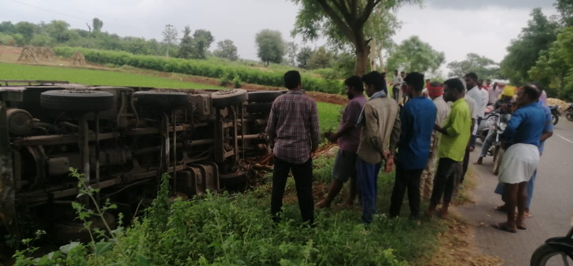 అదుపుతప్పి సిమెంట్ లోడు లారీ బోల్తా