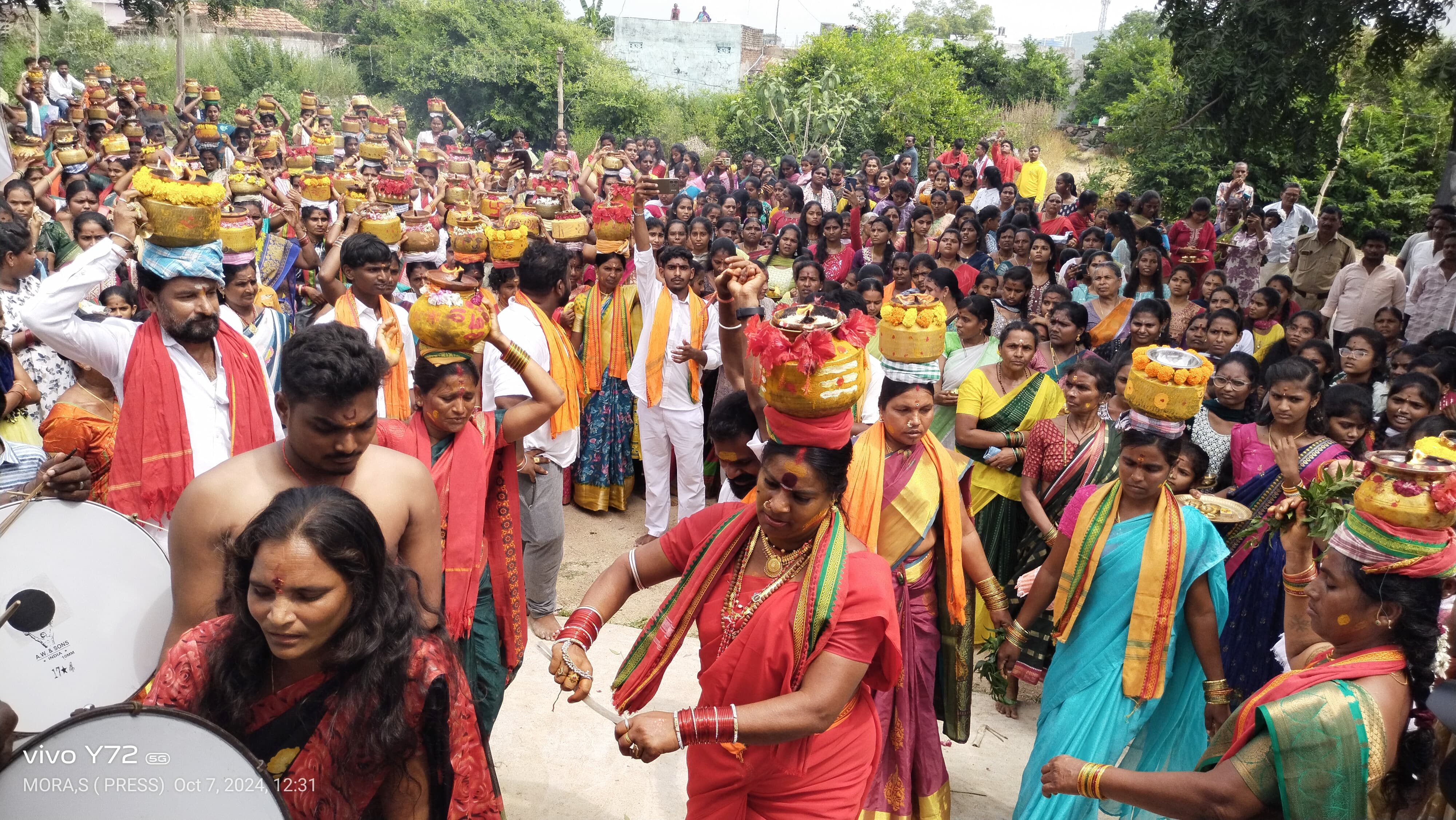 మల్లాపూర్ మండల కేంద్రంలో దుర్గా దేవి నవరాత్రి ఉత్సవాలలో భాగంగా సోమవారం దుర్గాదేవికి మహిళలు బోనాలను సమర్పించారు. ఈ సందర్భంగా గ్రామంలోని ప్రధాన వీధుల గుండా డప్పు...