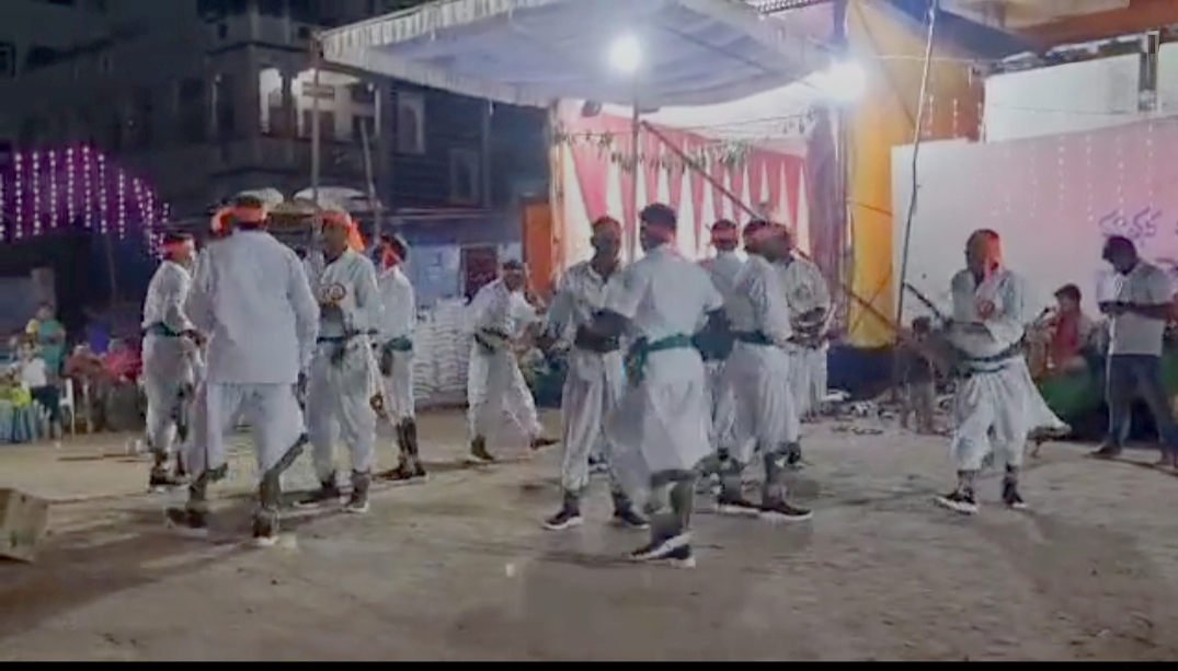 మెట్ పల్లి పట్టణంలోని ఆదర్శ్ నగర్ లో ఏర్పాటు చేసిన దుర్గామాత విగ్రహం వద్ద ఆదివారం రాత్రి ప్రదర్శించిన గోధుర్ కళాకారుల కోలాటం ఆహుతులను ఎంతోగాను అలరించింది....