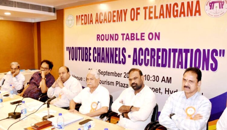 హైదరాబాద్: ఆన్లైన్ మీడియా. యూట్యూబ్ న్యూస్ చానల్స్ గుర్తింపు - అక్రిడిటేషన్ల జారీ అంశాలపై, తెలంగాణ మీడియా అకాడమీ ఆధ్వర్యంలో హోటల్ టూరిజం ప్లాజాలో చైర్మన్ కే....