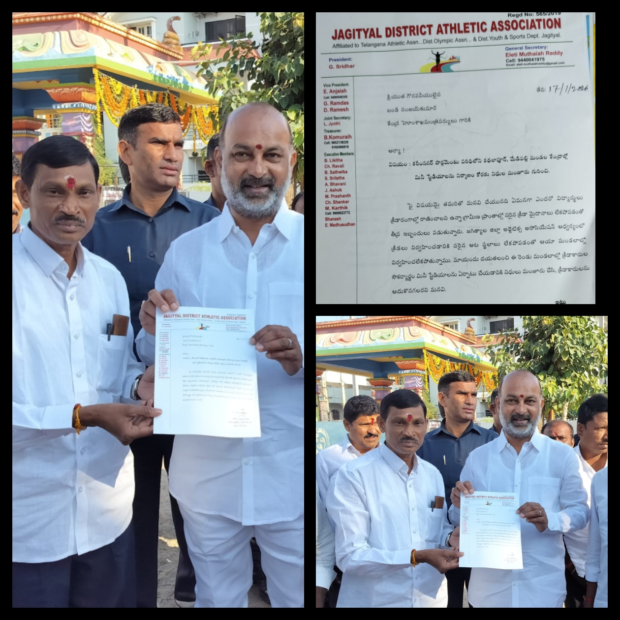 జగిత్యాల జిల్లా అథ్లెటిక్స్ అసోసియేషన్ ఆధ్వర్యంలో నిర్వహించే అథ్లెటిక్స్ పోటీల కోసం మేడిపల్లి, కథలాపురం మండలాల్లో మినీ స్టేడియాలు నిర్మించాలని కోరుతూ జిల్లా అథ్లెటిక్స్ అసోసియేషన్ ప్రధాన...