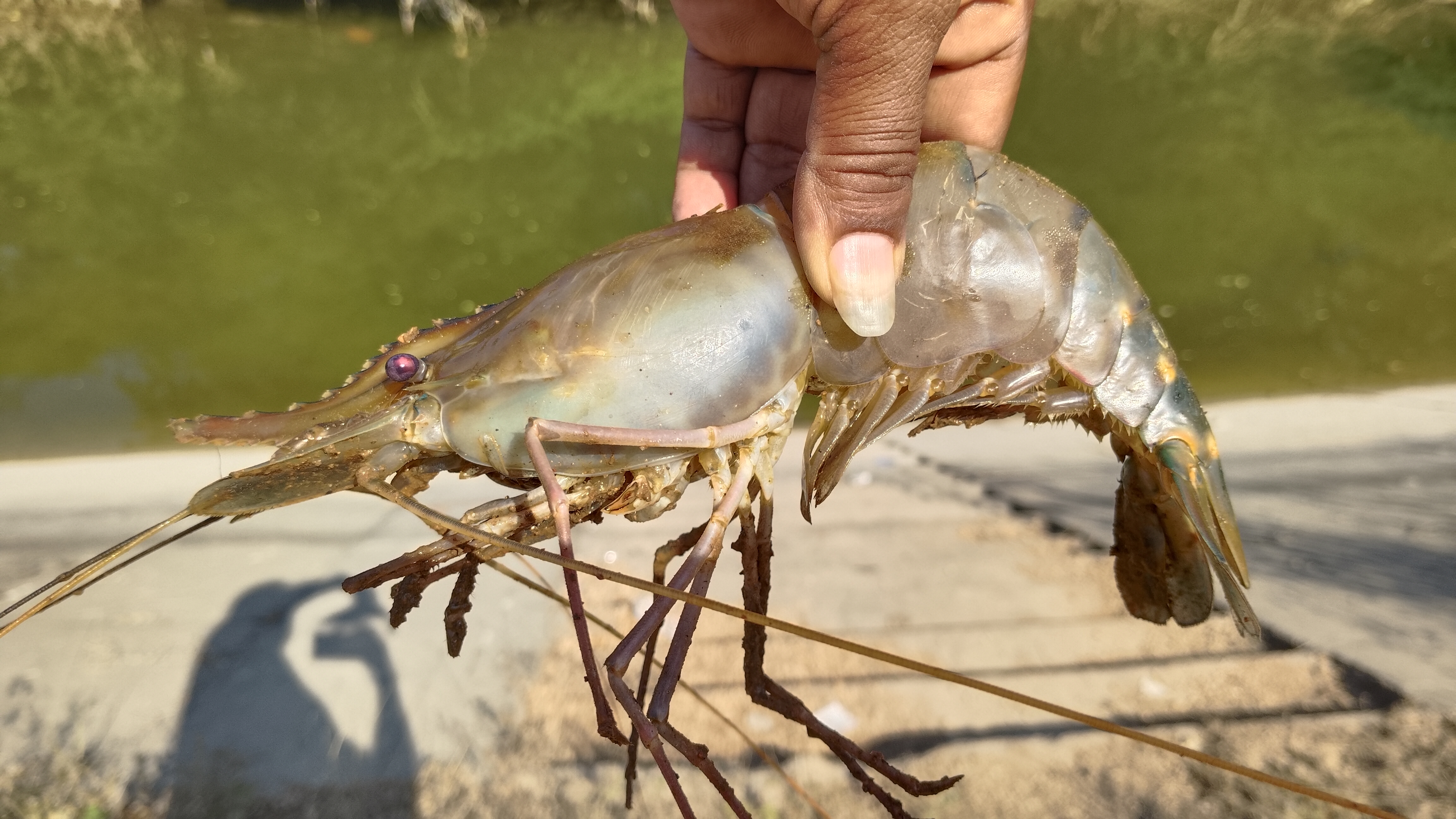 కాలువలో ప్రత్యక్షమైన భారీ రొయ్య