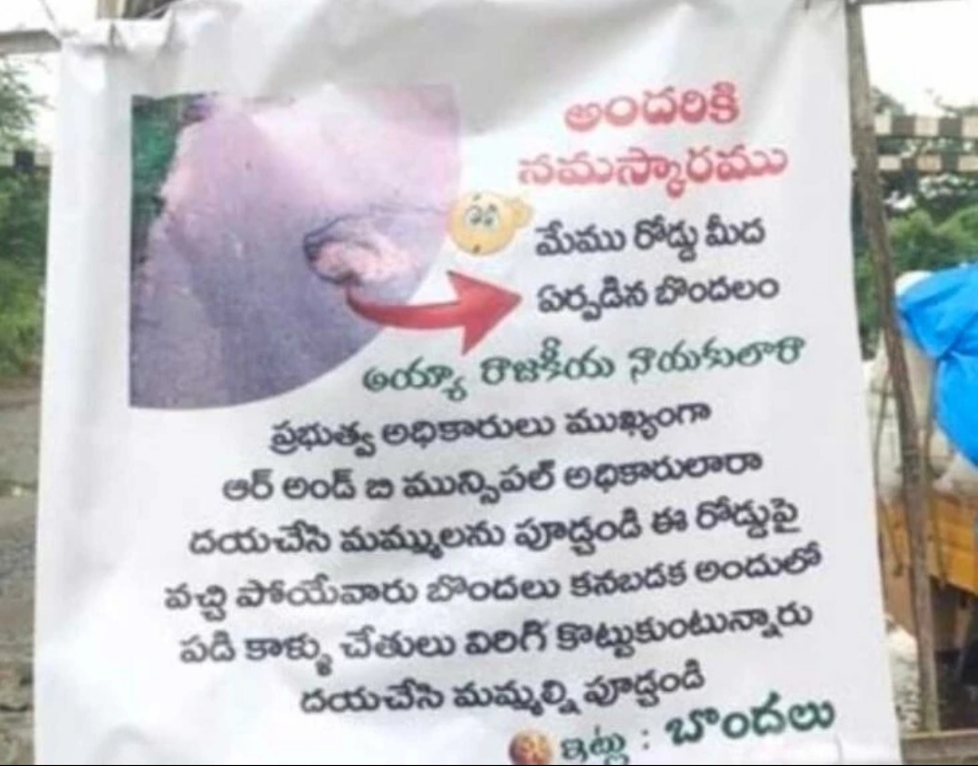 గుంతలు పూడ్చండి అంటూ ఫ్లెక్సీ