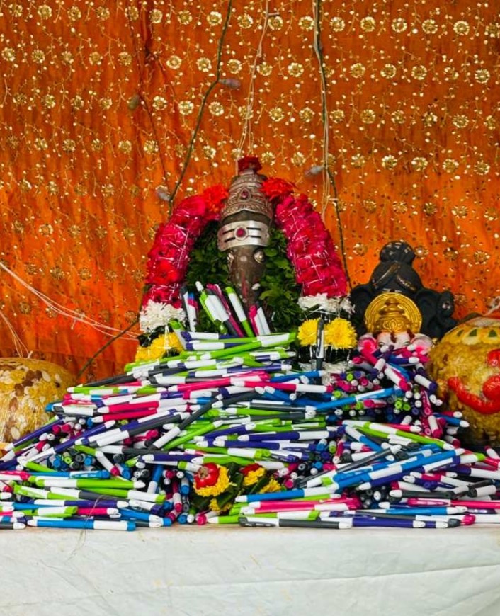 అమలాపురం దుడ్డు వారి అగ్రహారంలోని బాలగణపతి విద్యార్థి సంఘం స్వామివారి మండపం వినాయకుడిని శనివారం కలంలతో అభిషేకం నిర్వహించారు. అనంతరం ఈ కలములను భక్తులకు, విద్యార్థి విద్యార్థినిలకు...