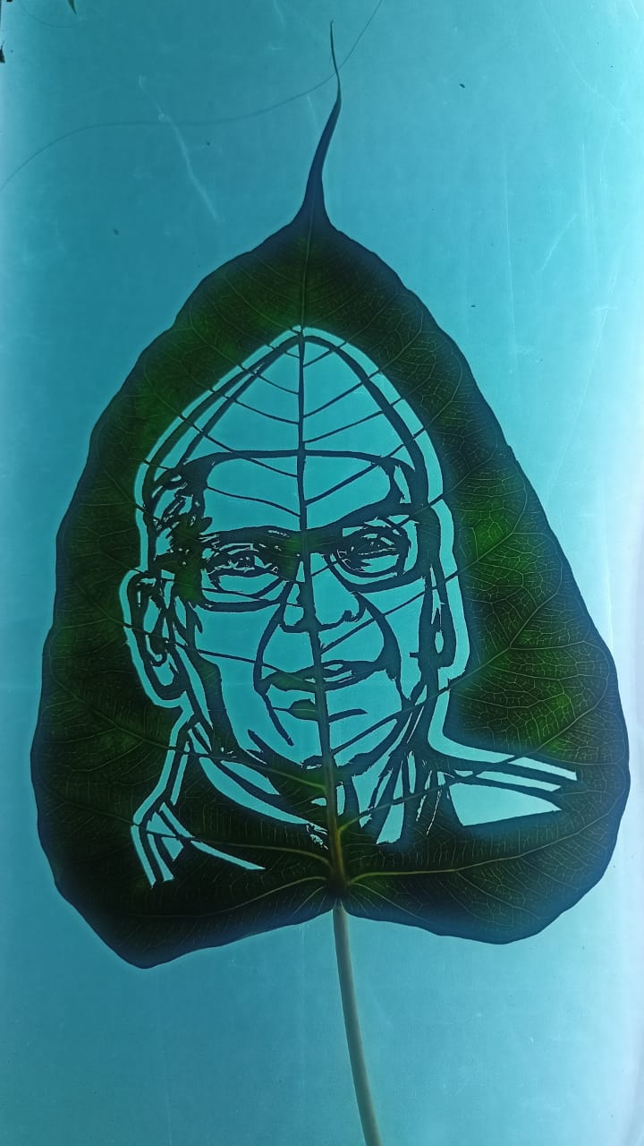 మునిపల్లి మండలం పెద్ద గోపులారం ప్రాథమిక పాఠశాల ఉపాధ్యాయురాలు అనురాధ రాగి ఆకుపై కొండా లక్ష్మణ్ బాపూజీ చిత్రాన్ని గీశారు. కొండా లక్ష్మణ్ బాపూజీ వర్ధంతి సందర్భంగా...