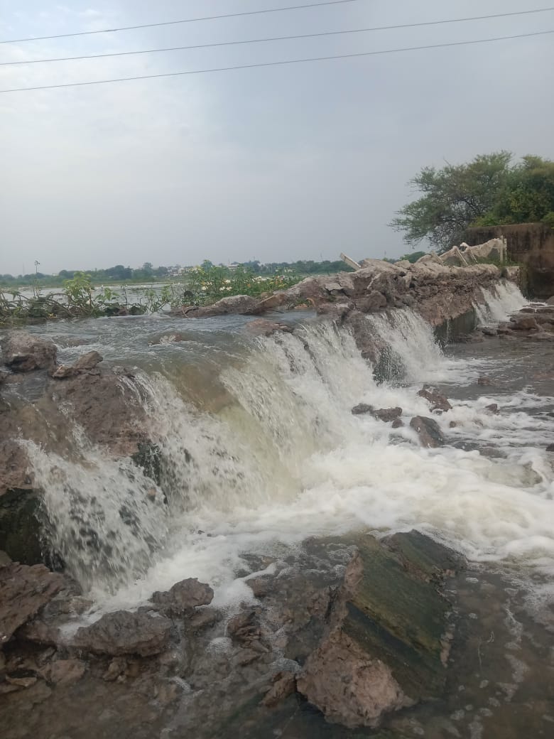 ఎమ్మెల్యే ఆదేశాలతో చెరువు మత్తడికి మరమ్మతులు