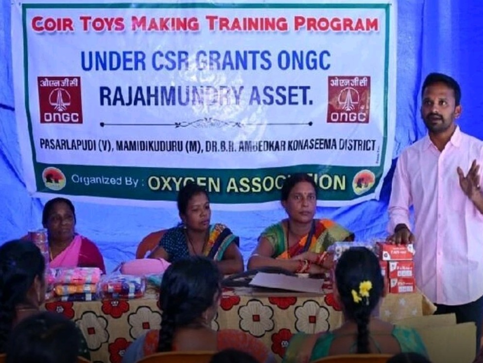కొబ్బరి పీచు బొమ్మల తయారీ ద్వారా మహిళలు తమ జీవనోపాధిని పెంపొందించుకోవాలని మామిడికుదురు మండలం పాశర్లపూడికి చెందిన ఆక్సిజన్ అసోసియేషన్ వ్యవస్థాపకుడు కటికిరెడ్డి గంగాధర్ సూచించారు. రాజమహేంద్రవరం...