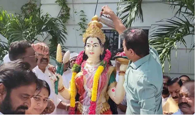 తెలంగాణ తల్లికి కేటీఆర్ పాలాభిషేకం