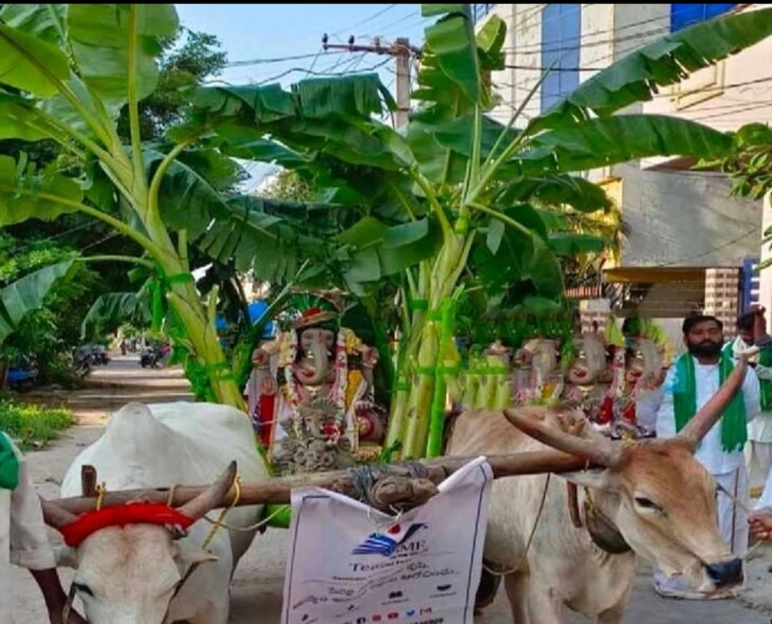 ఎడ్ల బండిపై వినాయకుడి ఊరేగింపు