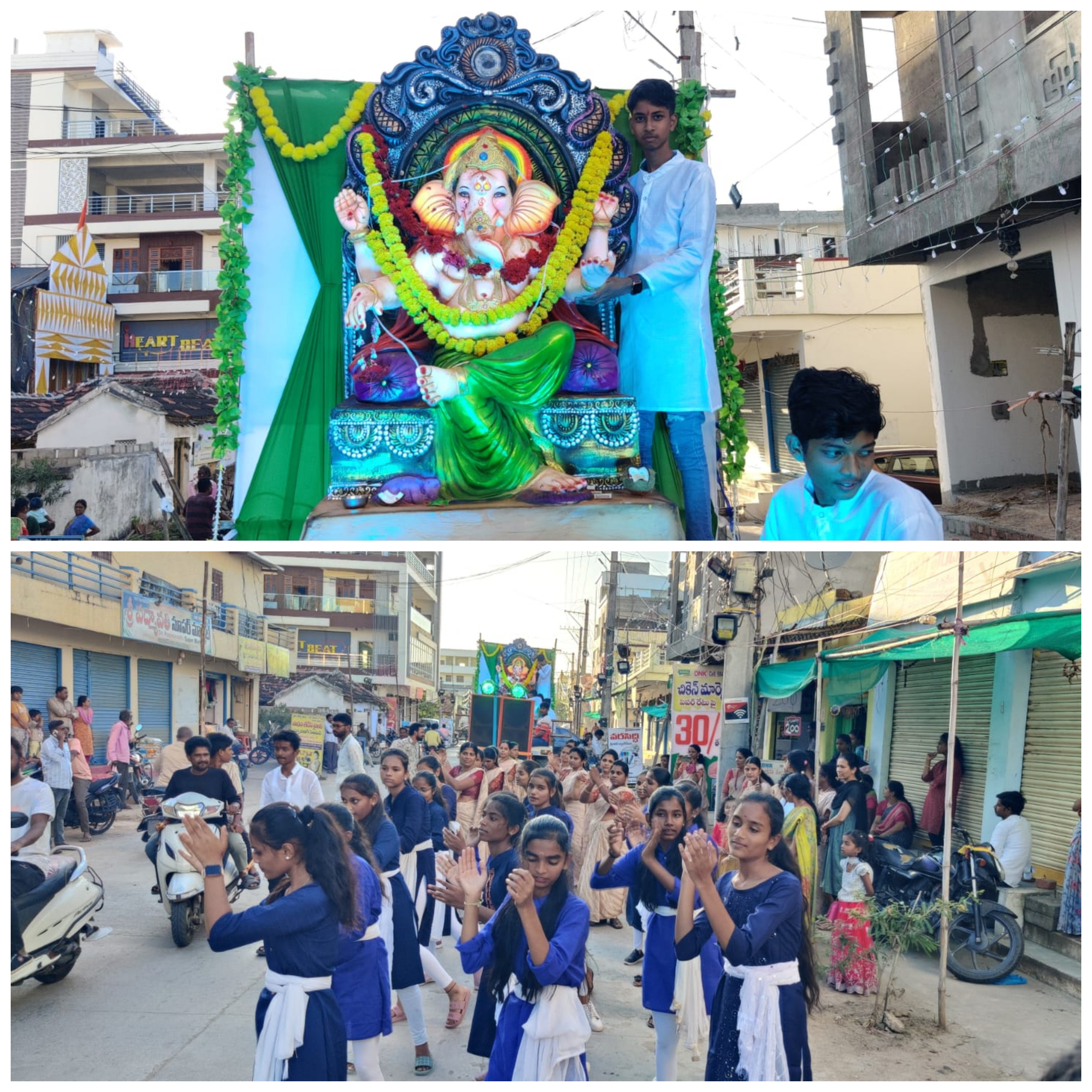 సిరిసిల్ల జిల్లా కేంద్రంలోని స్థానిక అశోక్ నగర్ లోనీ సెలెస్టియల్ హై స్కూల్లో కరస్పాండెంట్ బుర్ర రాధకృష్ణ ప్రసాద్ గౌడ్ ఆధ్వర్యంలో గణేష్ నిమజ్జనాన్ని ఘనంగా నిర్వహించారు....