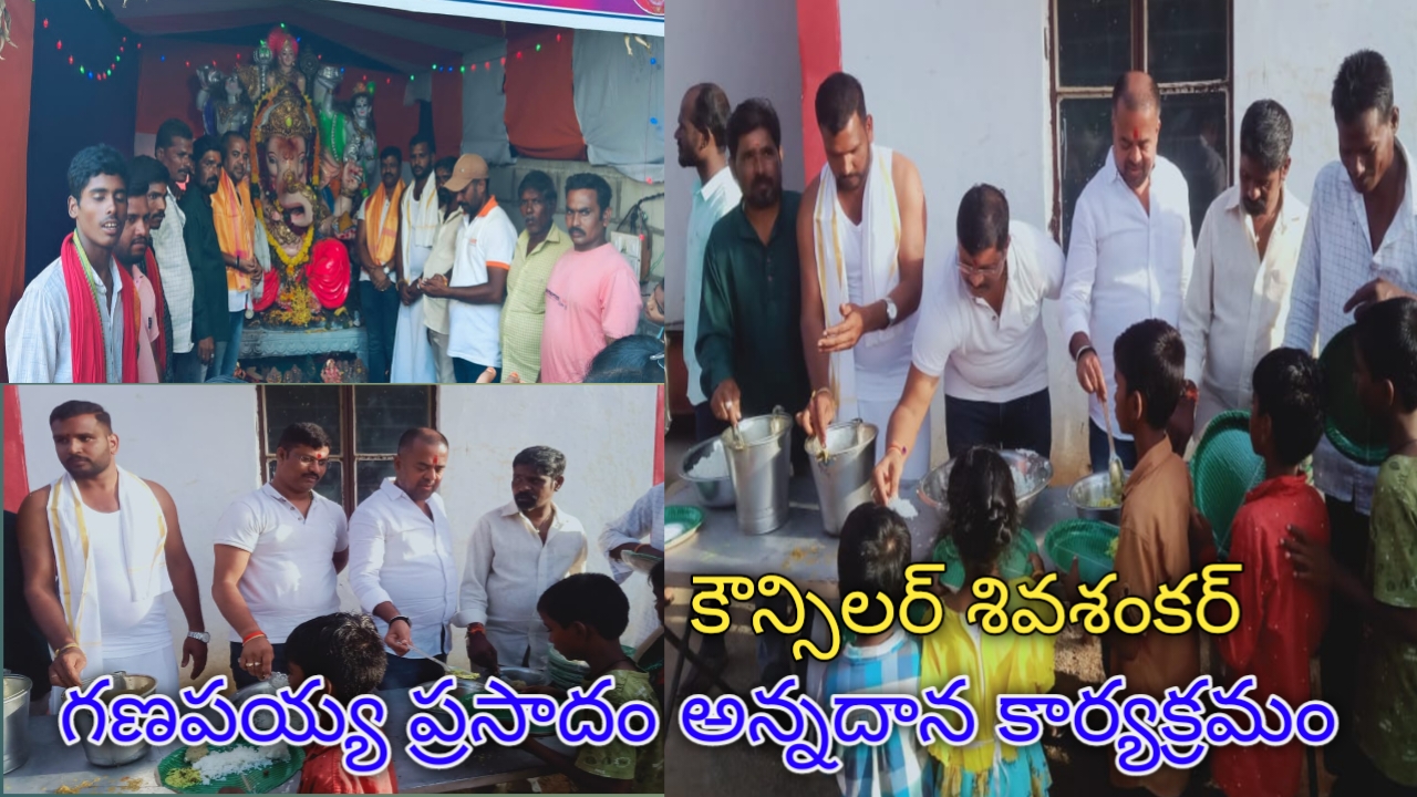 సంగారెడ్డి జిల్లా జోగిపేట పట్టణంలోని ఒకటో వార్డు డబుల్ బెడ్ రూమ్ కొలువుదీరిన గణపయ్య మండపం వద్ద అన్నదాన కార్యక్రమం నిర్వహించారు ఒకటో వార్డ్ కౌన్సిలర్ శివశంకర్....