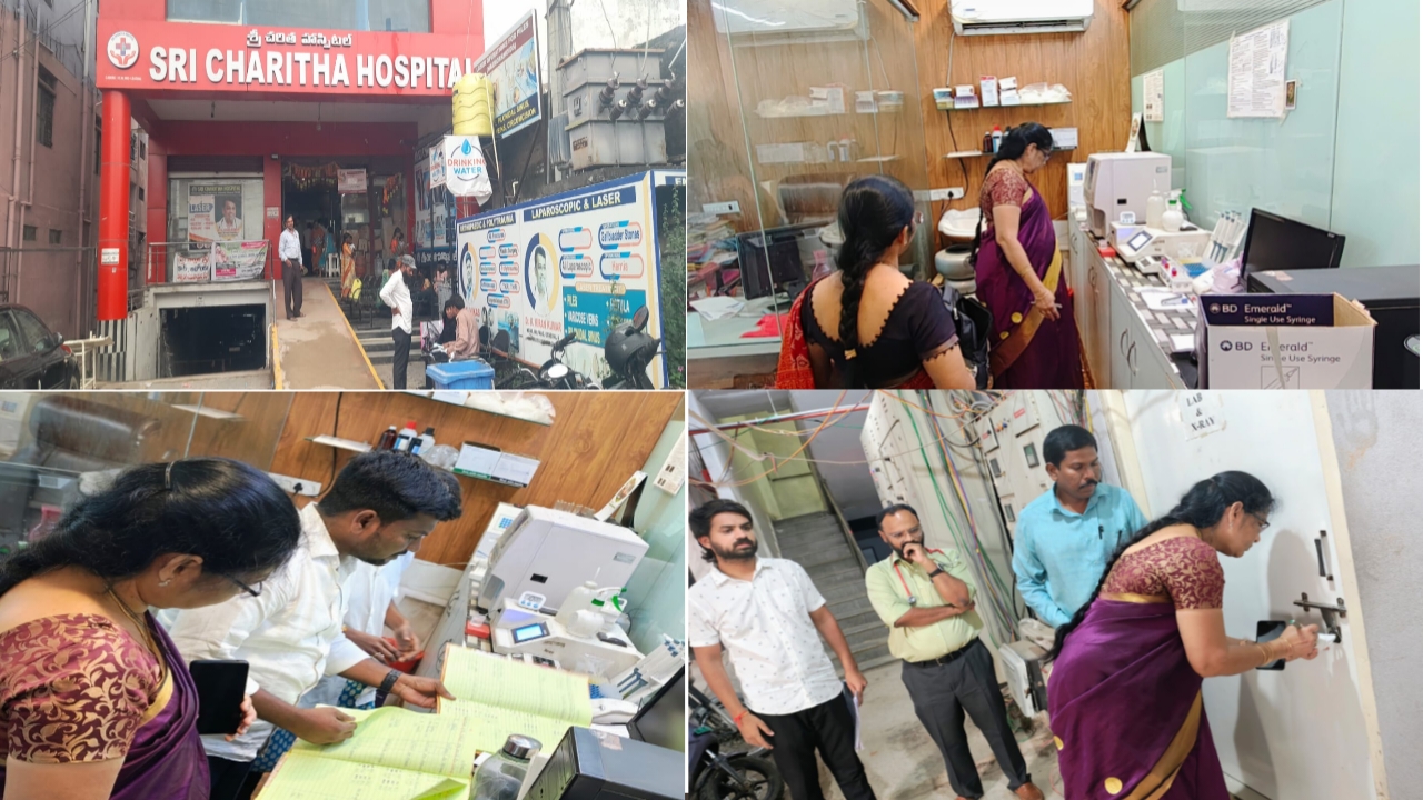 సంగారెడ్డి జిల్లా కలెక్టర్ వల్లూరి క్రాంతి ఆదేశాల మేరకు జిల్లా వైద్యాధికారి డా. గాయత్రి దేవి సంగారెడ్డి పట్టణంలోని శిశురక్ష-చరిత ప్రైవేట్ ఆసుపత్రులను ఆకస్మిక తనిఖీ చేశారు....