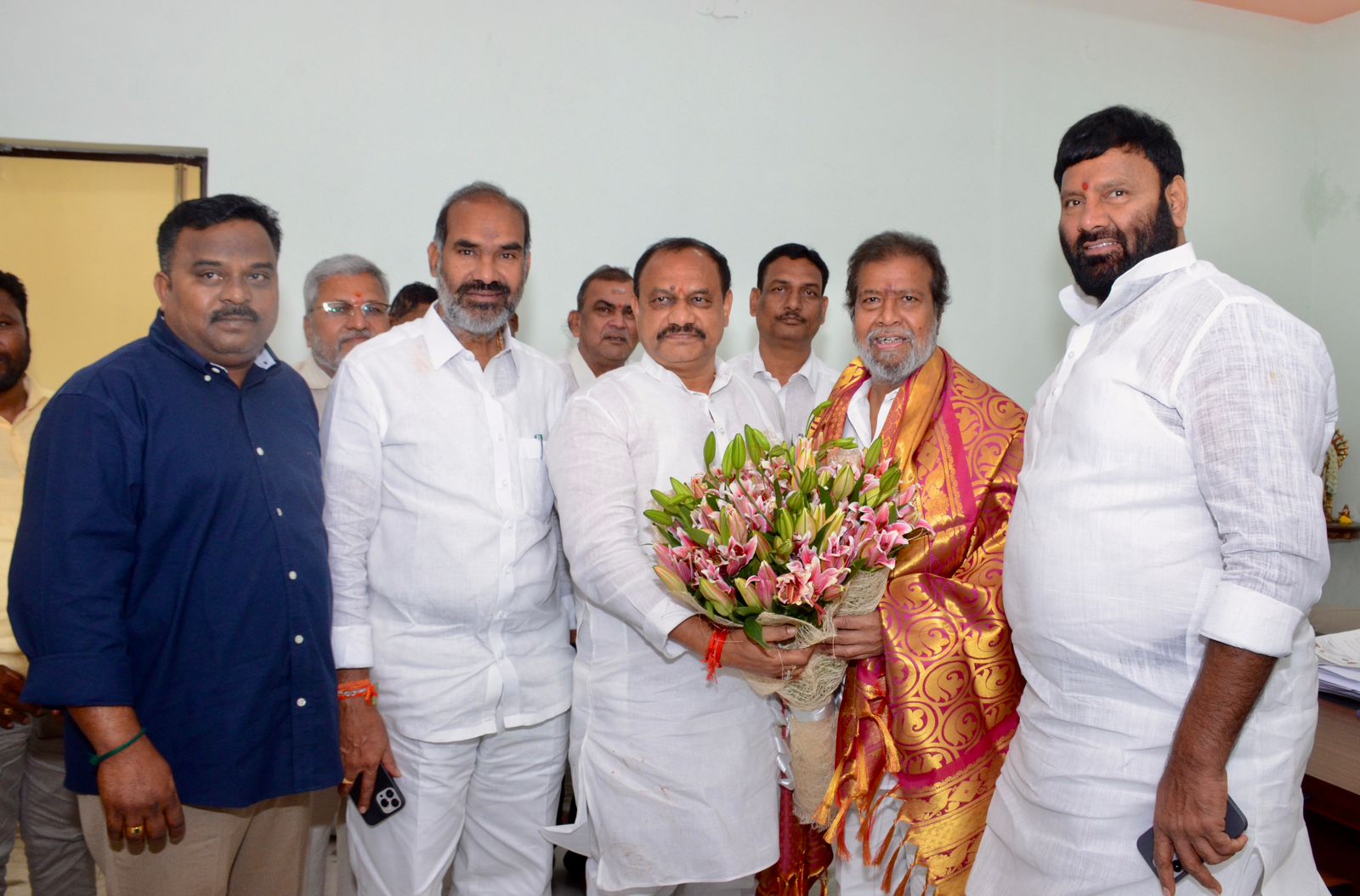 మంత్రి దామోదర రాజనర్సింహ, టీ-పీసీసీ నూతన అధ్యక్షుడు, ఎమ్మెల్సీ మహేష్ కుమార్ గౌడ్ని, ప్రభుత్వ విప్ అడ్లూరి లక్ష్మణ్, మాజీ ఎమ్మెల్యే కూన శ్రీశైలం గౌడ్ తో...