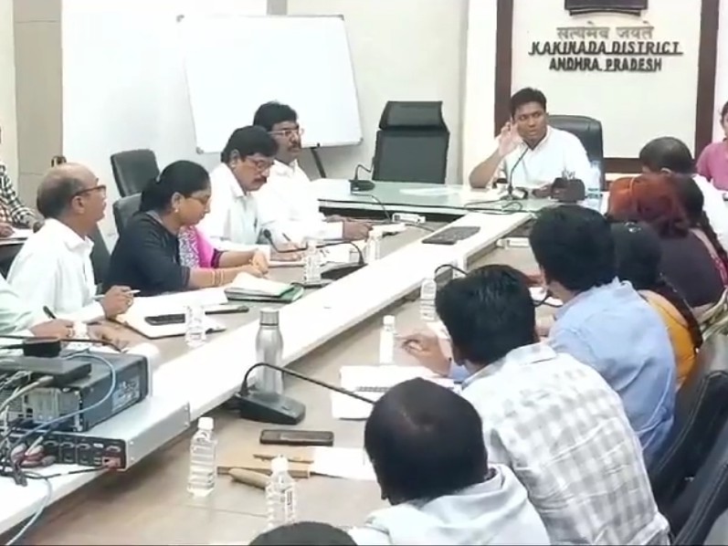భారీ వర్షాలు, తుఫాను హెచ్చరిక నేపథ్యంలో సోమవారం కాకినాడ కలెక్టరేట్లో వివిధ జిల్లా స్థాయి అధికారులతో కలెక్టర్ షణ్మోహన్ సమావేశం నిర్వహించారు. ఈ సందర్భంగా ఆయన మాట్లాడుతూ...