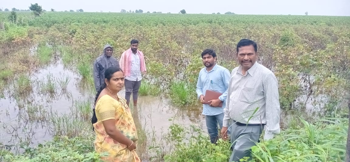 జగదేవ్ పూర్ మండలం గొల్లపల్లి గ్రామంలో అధిక వర్షాలతో దెబ్బతిన్న పర్తి పంటలను జిల్లా వ్యసాయాధికారి రాధిక పరిశీలించారు. నల్లరేగడి భూముల్లో పత్తి పంటలో నీరు నిలిచి...