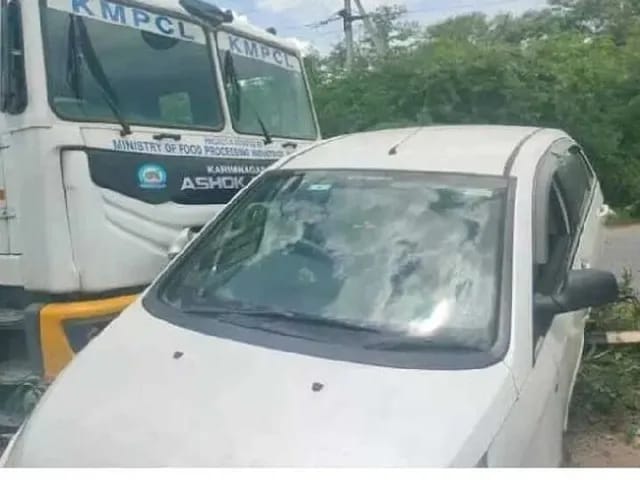 కారును ఢీకొట్టిన కరీంనగర్ డైరీ మిల్క్ ట్యాంకర్