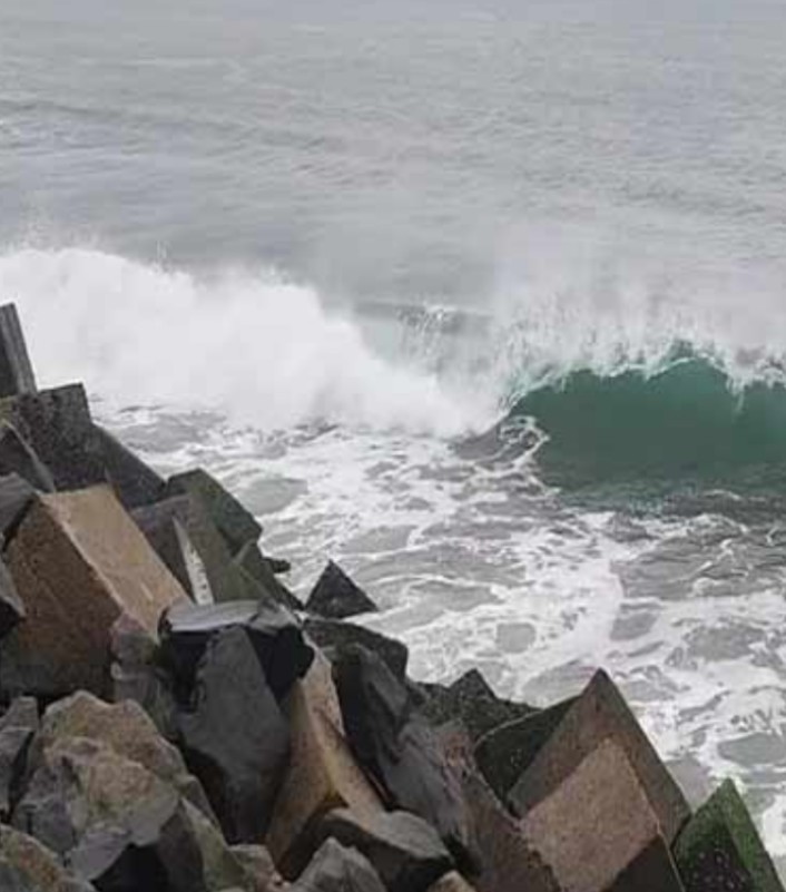 ఉప్పాడ తీరంలో ఎగసిపడుతున్న అలలు