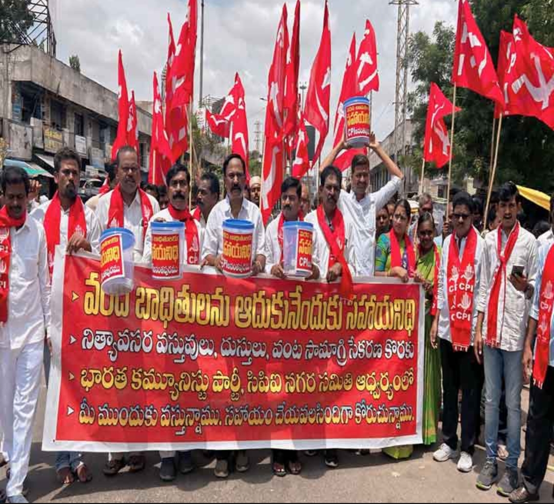 సీపీఐ ఆధ్వర్యంలో విరాళాల సేకరణ