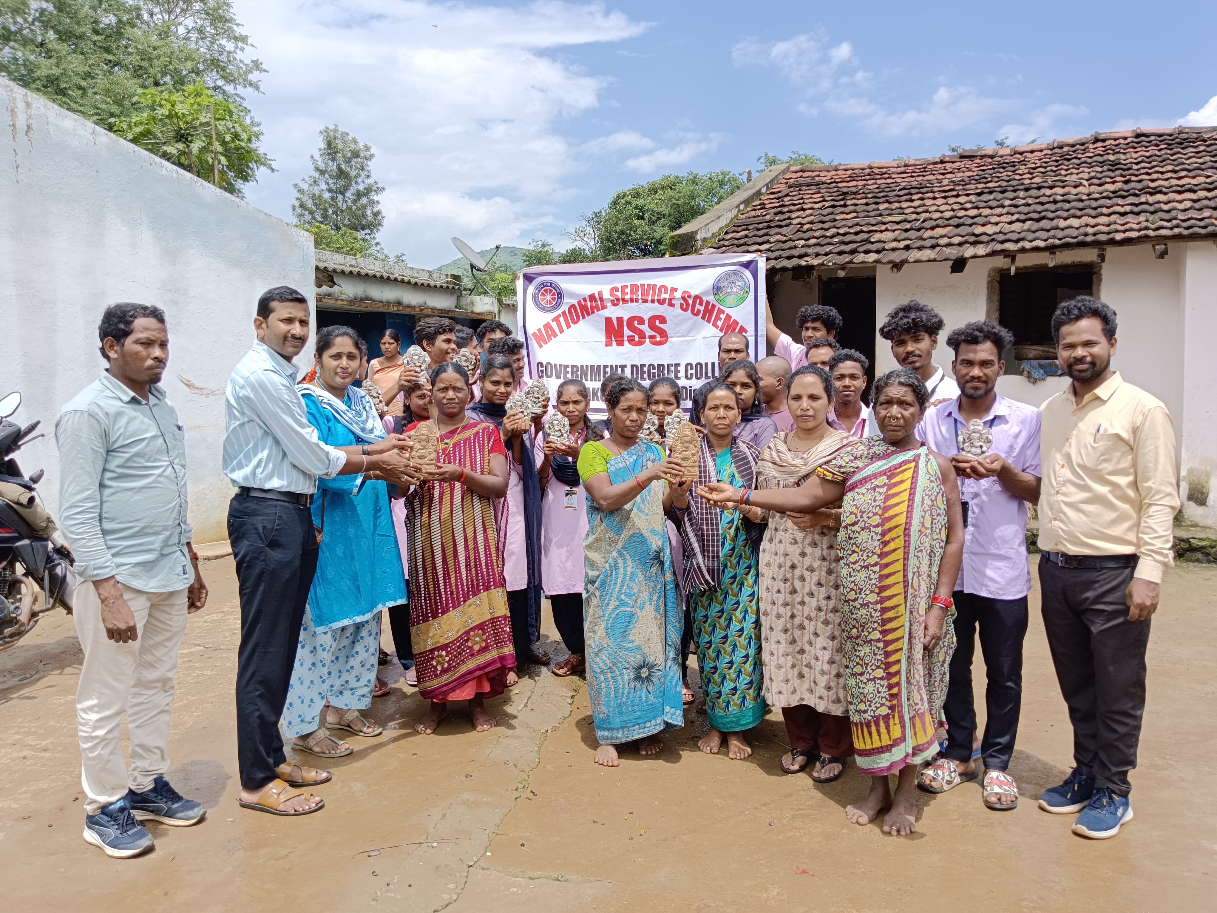 అరకులోయ ప్రభుత్వ డిగ్రీ కళాశాల NSS విభాగం ఆధ్వర్యంలో మట్టి వినాయక ప్రతిమలను గిరి గ్రామాలలో పంపిణీ చేశారు. దలపతిగూడ, బోడుగుడ, డింగ్రిపుట్టు, చొంపి, బోసుబెడ గ్రామాల...